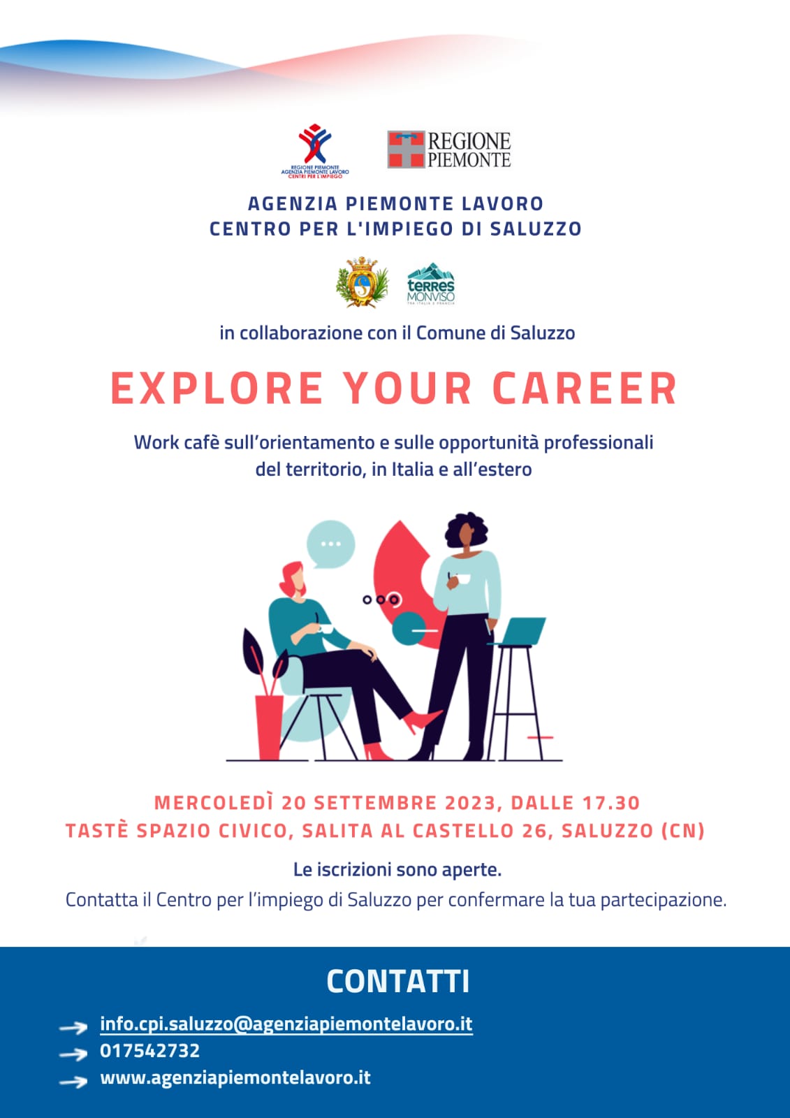 LE ISCRIZIONI SONO APERTE CONTATTANDO IL CENTRO PER L'IMPIEGO DI SALUZZO PER CONFERMARE LA TUA PARTECIPAZIONE.