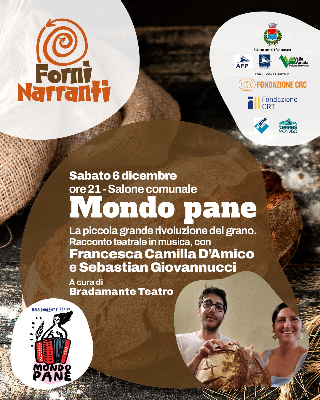 "Mondo pane" la piccola grande rivoluzione del grano. Rito, mito, trasformazione, resistenza. Racconto teatrale in musica con Francesca Camilla D'Amico e Sebastian Giovannucci a cura di Bradamante Teatro